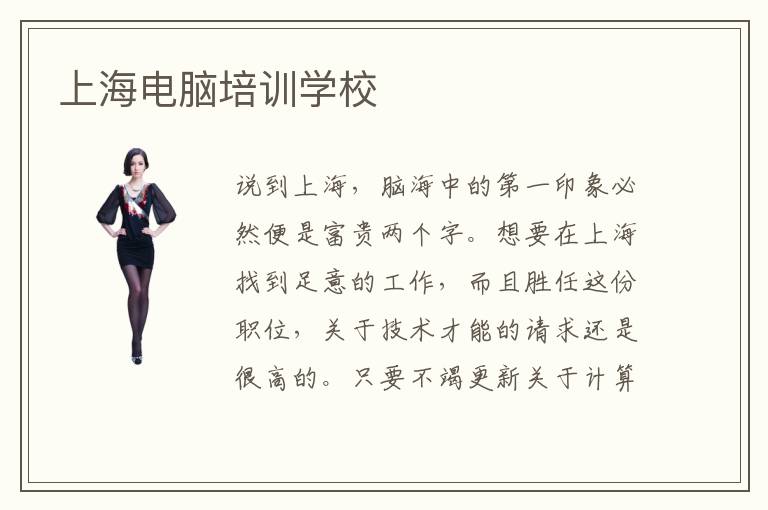 說(shuō)到上海,腦海中的第一印象必然便是富貴兩個(gè)字。想要在上海找到足意的工作,而且勝任這份職位,關(guān)于技術(shù)才能的請(qǐng)求還是很高的。只要不竭更新關(guān)于計(jì)算機(jī)專(zhuān)業(yè)常識(shí)的學(xué)習(xí),做到與時(shí)俱進(jìn),不竭用更高的標(biāo)準(zhǔn)請(qǐng)求本身,能力在上海這個(gè)經(jīng)濟(jì)發(fā)財(cái)?shù)亩紩?huì)安身。上海電腦培訓(xùn)學(xué)校同樣成立了良多家,分歧培訓(xùn)機(jī)構(gòu)的講授體例分歧,學(xué)生學(xué)到的常識(shí)也分歧。上海電腦培訓(xùn)電腦培訓(xùn)學(xué)校推薦電腦學(xué)校