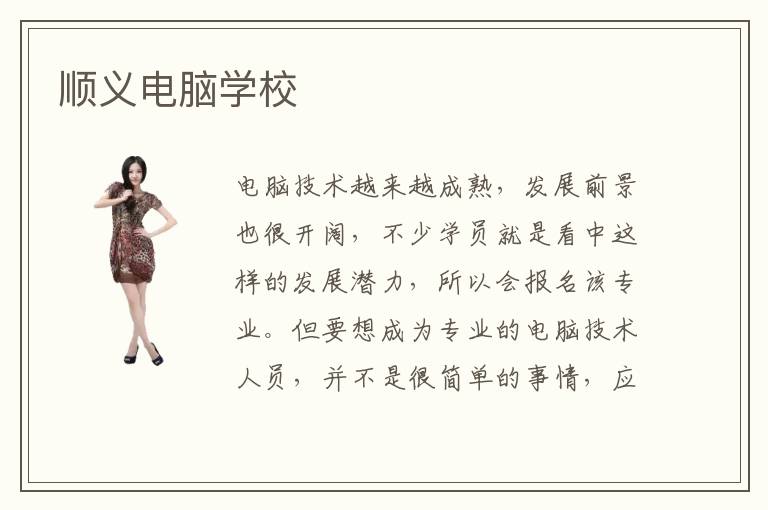 電腦技術(shù)越來(lái)越成熟,發(fā)展前景也很開(kāi)闊,不少學(xué)員就是看中這樣的發(fā)展?jié)摿?,所以?huì)報(bào)名該專(zhuān)業(yè)。但要想成為專(zhuān)業(yè)的電腦技術(shù)人員,并不是很簡(jiǎn)單的事情,應(yīng)該努力積累電腦理論知識(shí)和應(yīng)用內(nèi)容,與其他專(zhuān)業(yè)的應(yīng)用學(xué)科結(jié)合在一起,從而發(fā)揮工作價(jià)值。順義電腦學(xué)校會(huì)提供大量的重點(diǎn)課程,每個(gè)階段都有目標(biāo)和訓(xùn)練的計(jì)劃,學(xué)生跟上老師的步伐,學(xué)習(xí)關(guān)鍵的技術(shù),成績(jī)會(huì)越變?cè)胶谩?a href="/it/detail10541.html">電腦學(xué)校的優(yōu)點(diǎn)在于教育的水平比較高,學(xué)生可以在專(zhuān)業(yè)老師的肩膀上學(xué)習(xí)更多知識(shí),因此視野比較開(kāi)闊。電腦學(xué)校的實(shí)踐輔導(dǎo)特別重要,因?yàn)楹芏鄠鹘y(tǒng)院校的學(xué)生都不太關(guān)注實(shí)踐過(guò)程,只看到書(shū)本內(nèi)容,雖然說(shuō)考試取得相當(dāng)滿(mǎn)意的分?jǐn)?shù),甚至接近滿(mǎn)分,但真正到了工作崗位,連基本的應(yīng)用要求都無(wú)法達(dá)到。