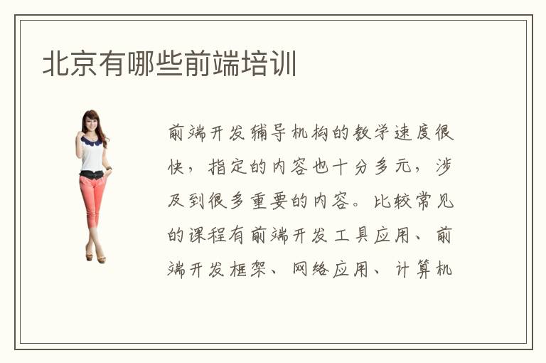 前端開(kāi)發(fā)輔導(dǎo)機(jī)構(gòu)的教學(xué)速度很快,指定的內(nèi)容也十分多元,涉及到很多重要的內(nèi)容。比較常見(jiàn)的課程有前端開(kāi)發(fā)工具應(yīng)用、前端開(kāi)發(fā)框架、網(wǎng)絡(luò)應(yīng)用、計(jì)算機(jī)網(wǎng)絡(luò)編程、網(wǎng)絡(luò)服務(wù)器、操作系統(tǒng)。大家在學(xué)習(xí)的時(shí)候,不僅可選擇自學(xué)方式也可以報(bào)名輔導(dǎo)機(jī)構(gòu),完成老師指定的重點(diǎn)課程,提高應(yīng)用能力。北京有哪些前端培訓(xùn),首先很多計(jì)算機(jī)培訓(xùn)機(jī)構(gòu)都提供前端設(shè)計(jì)的課程,就是如果不太確定,可以到當(dāng)?shù)氐妮o導(dǎo)班咨詢,選擇適合自己的培訓(xùn)項(xiàng)目。前端培訓(xùn)要多少錢,取決于前端設(shè)計(jì)的課程難度、學(xué)習(xí)時(shí)間等等。有的學(xué)生基礎(chǔ)很薄弱,會(huì)考慮入門級(jí)的前端設(shè)計(jì)課程,學(xué)習(xí)時(shí)間比較短,收費(fèi)標(biāo)準(zhǔn)會(huì)更低。所以前端專業(yè)技術(shù)人員要針對(duì)個(gè)人能力和專業(yè)需求,找到合適的課程,不能只看費(fèi)用問(wèn)題。