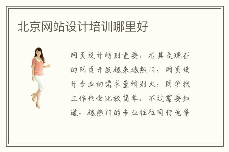 網(wǎng)頁設計特別重要,尤其是現(xiàn)在的網(wǎng)頁開發(fā)越來越熱門,網(wǎng)頁設計專業(yè)的需求量特別大,同學找工作也會比較簡單。不過需要知道,越熱門的專業(yè)往往同行競爭壓力也越大,學生不僅要努力學習當下的知識,也要不斷更新知識庫,關注前沿的技術內(nèi)容,了解行業(yè)的發(fā)展動態(tài)。如果感覺這些網(wǎng)頁設計課程很難,可以看看北京網(wǎng)站設計培訓哪里好,了解各種培訓班的教學方式和培訓重點。網(wǎng)站設計輔導老師可以培養(yǎng)同學的應用思維,使同學的視野更開闊,短期內(nèi)看到進步后,也能增強學習動力,迅速達到學習目標。網(wǎng)站設計怎么學習,學習網(wǎng)頁設計的時候,同時也可以從基礎出發(fā),了解基本的設計、軟件設計流程、設計要求等等,然后進一步針對工作應用進行訓練。比較常見的工作應用有平面設計、網(wǎng)頁設計、移動界面設計。