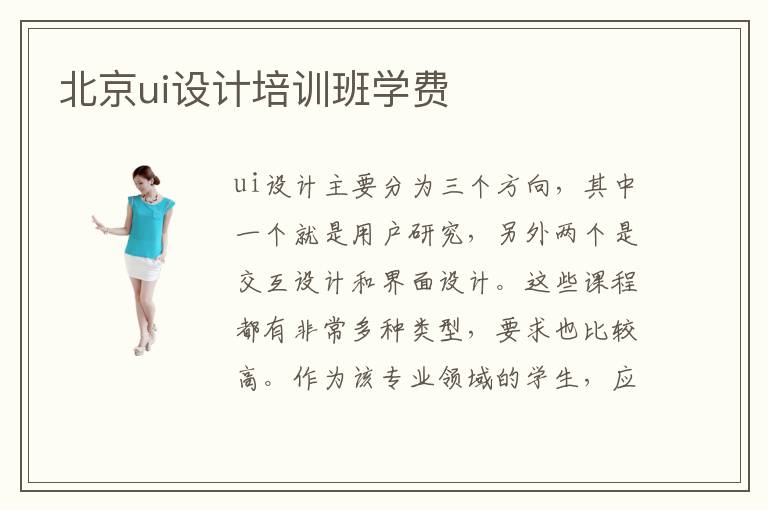 ui設計主要分為三個方向,其中一個就是用戶研究,另外兩個是交互設計和界面設計。這些課程都有非常多種類型,要求也比較高。作為該專業(yè)領(lǐng)域的學生,應該與時俱進,不斷優(yōu)化個人知識庫,強化ui設計水平。不少學生都感覺ui設計的難度很高,所以想報名專業(yè)輔導班,減少學習過程的困境。北京ui設計培訓班學費大概需要準備3000~1萬元,有些學生在復習的階段,沒有找到合適的課程,也沒有根據(jù)個人能力進行篩選,選擇一些超過自己能力范圍的課程,難以獲得進展。ui設計的應用相當豐富,比如可以用在網(wǎng)絡優(yōu)化、交互設計、網(wǎng)頁界面設計。ui設計就業(yè)容易嗎,ui就業(yè)難度不算高,因為企業(yè)的需求量大,處于供不應求的階段,學生應當好好把握住機會,努力贏得更多工作優(yōu)勢。