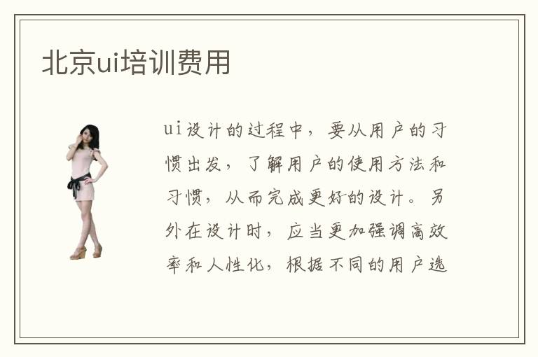 ui設計的過程中,要從用戶的習慣出發(fā),了解用戶的使用方法和習慣,從而完成更好的設計。另外在設計時,應當更加強調高效率和人性化,根據不同的用戶選擇不一樣的ui設計方案,有利于讓大家在使用的時候更加方便。不少學生都沒有這方面的經驗,也沒有ui設計的技巧,所以設計的效率很低,設計出來的成果也很難讓人滿意。這時可以參加某些專業(yè)輔導班,選擇合適的課程,提高個人設計水平。北京ui培訓費用可能需要3000~1萬元,實際上在復習階段應該根據個人能力篩選對應的課程,假如選高難度的課程,費用就會上升。ui培訓班的優(yōu)勢主要就是營造很輕松的環(huán)境,讓大家的學習過程充滿樂趣,ui就業(yè)難嗎,ui就業(yè)的難度不大,因為企業(yè)的需求量特別大,大家可以好好把握住行業(yè)的機遇。