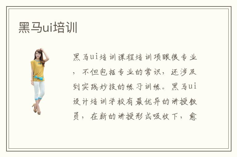 黑馬ui培訓ui培訓課程培訓項眼很專業(yè),不但包括專業(yè)的常識,還涉及到實踐妙技的練習訓練。黑馬ui設計培訓學校有最優(yōu)異的講授教員,在新的講授形式吸收下,愈來愈多的學生可以闡揚其最高效地學習效力,黑馬UI培訓機構課程針對分歧學生可以有矯捷的變更。黑馬UI設計培訓學校在專業(yè)講授團隊的撐持下,其培訓課程的培訓結果也愈來愈好,闡揚其最大的學習代價。黑馬ui培訓推薦電腦學校