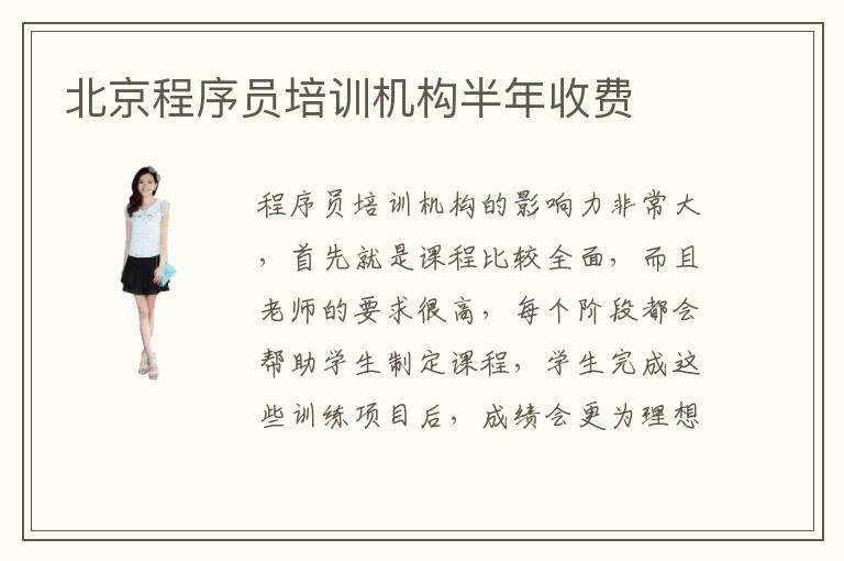 程序員培訓(xùn)機(jī)構(gòu)的影響力非常大,首先就是課程比較全面,而且老師的要求很高,每個(gè)階段都會(huì)幫助學(xué)生制定課程,學(xué)生完成這些訓(xùn)練項(xiàng)目后,成績會(huì)更為理想,知識體系更加全面,能力也會(huì)更強(qiáng)。北京程序員培訓(xùn)機(jī)構(gòu)半年收費(fèi),可能在5000~2萬元,事實(shí)上培訓(xùn)機(jī)構(gòu)的綜合能力不同,收費(fèi)標(biāo)準(zhǔn)存在變化。程序員培訓(xùn)機(jī)構(gòu)作用在于為同學(xué)安排許多核心的課程,也會(huì)介紹很多基礎(chǔ)應(yīng)用和案例,幫助大家掌握工作要求。假如同學(xué)的學(xué)習(xí)思路不清晰,或者工作的能力不強(qiáng),在工作上都會(huì)影響個(gè)人表現(xiàn),但得到培訓(xùn)機(jī)構(gòu)的幫助后,學(xué)生可以迅速理解專項(xiàng)內(nèi)容,也能提高工作能力。程序員的待遇相當(dāng)不錯(cuò),有些技術(shù)人員每個(gè)月都能獲得1萬到3萬的待遇,要是水平很高,經(jīng)驗(yàn)豐富,待遇還會(huì)翻倍。