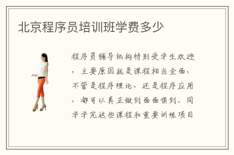 程序員輔導(dǎo)機(jī)構(gòu)特別受學(xué)生歡迎,主要原因就是課程相當(dāng)全面,不管是程序理論,還是程序應(yīng)用,都可以真正做到面面俱到。同學(xué)學(xué)完這些課程和重要訓(xùn)練項(xiàng)目后,可以理解更加透徹,也能學(xué)習(xí)很多復(fù)雜的技術(shù)任務(wù)。北京程序員培訓(xùn)班學(xué)費(fèi)多少,也許在5000到3萬(wàn)元之間,因?yàn)榕嘤?xùn)機(jī)構(gòu)的專業(yè)能力、教學(xué)經(jīng)驗(yàn)、培訓(xùn)成果等等都不同,所以報(bào)名費(fèi)存在差異。程序員培訓(xùn)班有用嗎,有些學(xué)校特別厲害,可以針對(duì)同學(xué)的能力設(shè)置個(gè)性化課程,同學(xué)收獲更明顯,進(jìn)步自然也會(huì)更大。程序員的任務(wù)主要有程序開發(fā)設(shè)計(jì)、安卓開發(fā)、前端設(shè)計(jì)、網(wǎng)絡(luò)優(yōu)化等等。技術(shù)人員在某些應(yīng)用方面的能力比較弱,或者缺乏專業(yè)的技術(shù)訓(xùn)練機(jī)會(huì),都不防報(bào)名輔導(dǎo)機(jī)構(gòu),從而贏得更大的發(fā)展空間,取得更多進(jìn)展。