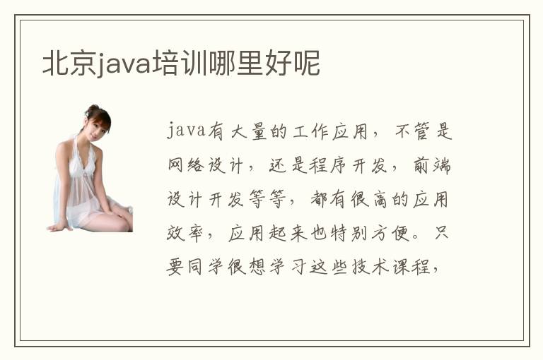java有大量的工作應(yīng)用,不管是網(wǎng)絡(luò)設(shè)計,還是程序開發(fā),前端設(shè)計開發(fā)等等,都有很高的應(yīng)用效率,應(yīng)用起來也特別方便。只要同學(xué)很想學(xué)習(xí)這些技術(shù)課程,可參加專業(yè)輔導(dǎo)班的幫助,提高個人的應(yīng)用能力,達(dá)到更強(qiáng)的工作目標(biāo)。北京java培訓(xùn)java培訓(xùn)哪里好呢,其實(shí)要想選擇優(yōu)質(zhì)的培訓(xùn)機(jī)構(gòu),應(yīng)該看看這些培訓(xùn)機(jī)構(gòu)的課程內(nèi)容、教學(xué)的方式、學(xué)習(xí)氛圍。不少學(xué)校的教學(xué)氛圍都非常濃郁,學(xué)生可以相互幫助,相互提升,學(xué)習(xí)過程也充滿樂趣。java培訓(xùn)班的就業(yè)率很高,許多技術(shù)人員因?yàn)檎也坏胶线m的工作,所以會報名培訓(xùn)班,強(qiáng)化個人技術(shù)水平,從而得到更多工作。java特點(diǎn)主要就是應(yīng)用范圍廣,操作很簡單,有多種多樣的功能。學(xué)生可以用于很多個領(lǐng)域,也能爭取自己的工作優(yōu)勢。