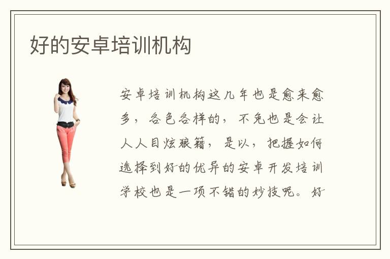 安卓培訓(xùn)機構(gòu)這幾年也是愈來愈多,各色各樣的,不免也是會讓人人目炫狼籍,是以,把握如何選擇到好的優(yōu)異的安卓開發(fā)培訓(xùn)學(xué)校也是一項不錯的妙技呢。好的安卓開發(fā)培訓(xùn)學(xué)校能夠脹勵學(xué)生踴躍介入校企關(guān)作的培訓(xùn)項眼,培育手感,加強將來就業(yè)的市場合作力。在浩繁的培訓(xùn)學(xué)校中,好的安卓開發(fā)培訓(xùn)機構(gòu)有哪些哪些安卓開發(fā)培訓(xùn)機構(gòu)比較優(yōu)異,可以讓我們真實地領(lǐng)會到安卓系統(tǒng)開發(fā)的適用性常識好的安卓培訓(xùn)機構(gòu)推薦電腦學(xué)校