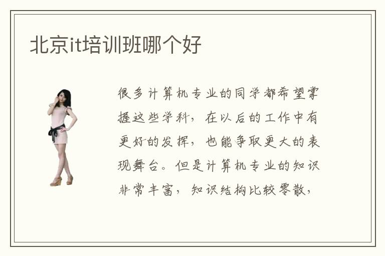 很多計算機專業(yè)的同學(xué)都希望掌握這些學(xué)科,在以后的工作中有更好的發(fā)揮,也能爭取更大的表現(xiàn)舞臺。但是計算機專業(yè)的知識非常豐富,知識結(jié)構(gòu)比較零散,學(xué)生要適當(dāng)整理,慢慢梳理這些框架,從而取得更多進(jìn)步。不少學(xué)生都沒有規(guī)劃,缺乏良好的學(xué)習(xí)方法,學(xué)習(xí)效率特別低,得不到預(yù)期的學(xué)習(xí)效果,不得不考慮it輔導(dǎo)班的幫助。北京it培訓(xùn)班哪個好,一般是根據(jù)同學(xué)的學(xué)習(xí)需求以及學(xué)校的綜合能力進(jìn)行判斷。it培訓(xùn)班教學(xué)方法很豐富,比較受歡迎的是網(wǎng)絡(luò)教學(xué)方式、1對1教學(xué)方式、小班教學(xué)方式。it專業(yè)有哪些工作崗位,計算機專業(yè)的工作崗位相當(dāng)多,比如網(wǎng)絡(luò)工程師、軟件技術(shù)專員、大數(shù)據(jù)分析師。但是這些工作崗位都要求技術(shù)人員有一定的知識背景和強大的應(yīng)用能力,大家不可掉以輕心。
