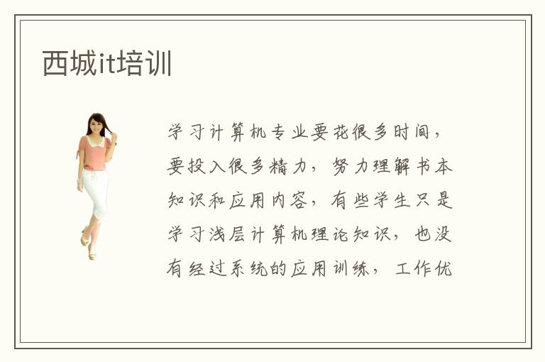 學(xué)習(xí)計(jì)算機(jī)專業(yè)要花很多時(shí)間,要投入很多精力,努力理解書(shū)本知識(shí)和應(yīng)用內(nèi)容,有些學(xué)生只是學(xué)習(xí)淺層計(jì)算機(jī)理論知識(shí),也沒(méi)有經(jīng)過(guò)系統(tǒng)的應(yīng)用訓(xùn)練,工作優(yōu)勢(shì)發(fā)揮不出來(lái)。要是想學(xué)習(xí)很多重要的應(yīng)用知識(shí),學(xué)生可以關(guān)注西城it培訓(xùn),老師更加強(qiáng)調(diào)應(yīng)用的訓(xùn)練,將理論和深度的應(yīng)用結(jié)合在一起,使得同學(xué)對(duì)計(jì)算機(jī)編程和計(jì)算機(jī)的各種應(yīng)用技術(shù)有更深層次的理解。it就業(yè)壓力大嗎,it就業(yè)的壓力不大,但因?yàn)閕t技術(shù)人員薪資有高有低,而且就業(yè)發(fā)展方向有所不同,所以技術(shù)人員要及時(shí)更新自己的知識(shí)庫(kù),提高專業(yè)的能力,這樣才能夠在就業(yè)中保持足夠的優(yōu)勢(shì),也能避免被其他同事淘汰。假如總是漫不經(jīng)心,不太注重發(fā)展方向,往往會(huì)遇到很多難題,難以取得理想的工作成果。