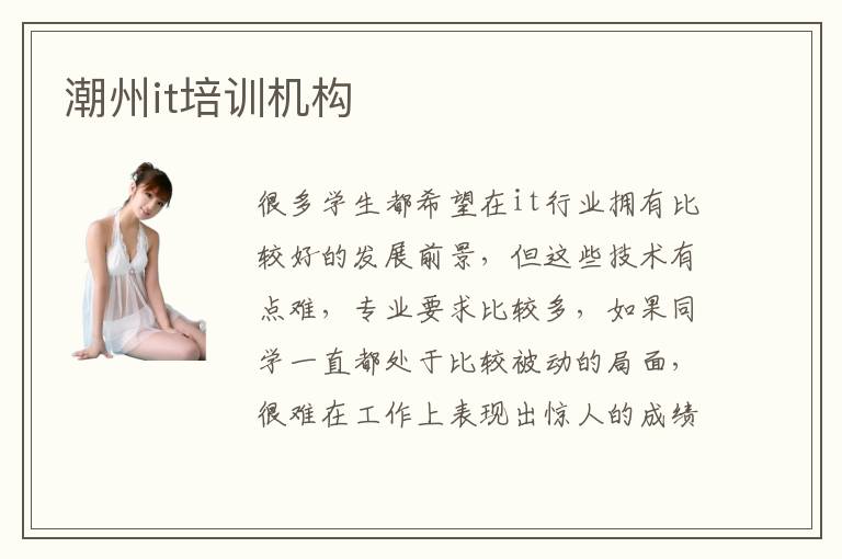 很多學(xué)生都希望在it行業(yè)擁有比較好的發(fā)展前景,但這些技術(shù)有點(diǎn)難,專業(yè)要求比較多,如果同學(xué)一直都處于比較被動的局面,很難在工作上表現(xiàn)出驚人的成績。還有部分學(xué)生總是滿足于當(dāng)下的發(fā)展水平,沒有真正去了解一些企業(yè)的應(yīng)用技術(shù),導(dǎo)致學(xué)習(xí)的速度不夠快,或者成績不夠好,長期處于原地踏步的狀態(tài),也難以凸顯出個人的優(yōu)勢。潮州it培訓(xùn)機(jī)構(gòu)有非常細(xì)致的課程,幫助同學(xué)積累很多應(yīng)用的經(jīng)驗(yàn),改善計算機(jī)應(yīng)用的水平。it行業(yè)怎么樣,行業(yè)很好,待遇比較高,工作機(jī)會也很多。it培訓(xùn)機(jī)構(gòu)的優(yōu)勢主要在于為大家分析行業(yè)動態(tài),提升同學(xué)的技術(shù)競爭力,開拓學(xué)習(xí)的視野。部分專業(yè)同學(xué)的能力不是很強(qiáng),專業(yè)水平不突出,影響工作中的表現(xiàn),但是培訓(xùn)機(jī)構(gòu)會幫助大家一一克服各種學(xué)習(xí)難題和障礙。
