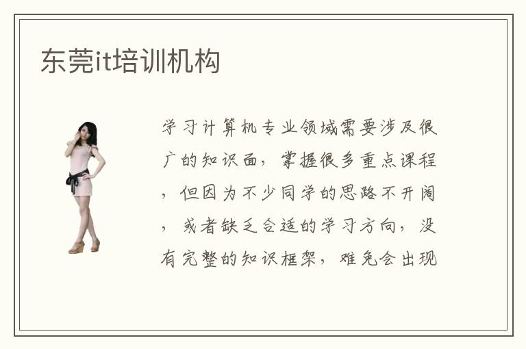學(xué)習(xí)計算機(jī)專業(yè)領(lǐng)域需要涉及很廣的知識面,掌握很多重點課程,但因為不少同學(xué)的思路不開闊,或者缺乏合適的學(xué)習(xí)方向,沒有完整的知識框架,難免會出現(xiàn)很多知識漏洞,無法跟同行競爭。東莞it培訓(xùn)it培訓(xùn)機(jī)構(gòu)可以手把手教學(xué),每一位老師都會非常負(fù)責(zé)了解同學(xué)的就業(yè)現(xiàn)狀和學(xué)習(xí)情況,然后再提供針對性的指導(dǎo)課程,這樣同學(xué)不僅可以收獲很多新穎的知識,而且對將來的學(xué)習(xí)也充滿著信心。it培訓(xùn)機(jī)構(gòu)上課方法比較多,比如1對1的課程,大班課程,小班課程,這些方法都十分有效,同學(xué)可以結(jié)合學(xué)習(xí)習(xí)慣,選擇合適的上課方法。隨著行業(yè)的快速發(fā)展,it工作難度也逐漸增大,所以同學(xué)要對自己有更嚴(yán)格的要求,努力接觸一些新穎的知識,跟上時代的步伐,才能獲得更多的進(jìn)步。