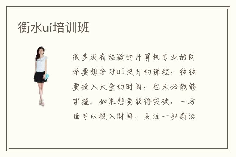 很多沒有經(jīng)驗的計算機(jī)專業(yè)的同學(xué)要想學(xué)習(xí)ui設(shè)計的課程,往往要投入大量的時間,也未必能夠掌握。如果想要獲得突破,一方面可以投入時間,關(guān)注一些前沿的課程,另一方面也可以參加某些專業(yè)機(jī)構(gòu)的培訓(xùn),從而獲得更大的提高。衡水ui培訓(xùn)ui培訓(xùn)班往往有很多年的經(jīng)驗,了解同學(xué)的現(xiàn)狀,也會針對同學(xué)的能力安排個性化的輔導(dǎo)方案,讓大家能夠選擇適合自己的課程,從而達(dá)到更好的水平。ui培訓(xùn)班教學(xué)能力非常強(qiáng),不少老師的教學(xué)的速度都非???,還可以根據(jù)同學(xué)的掌握情況調(diào)整上課的節(jié)奏。ui工程師有沒有前途,ui設(shè)計工程師的前途非常好,工作比較輕松,工作門檻不算高,許多人學(xué)習(xí)一段時間,也能找到滿意的工作。在工作上,要有認(rèn)真學(xué)習(xí)的態(tài)度,努力強(qiáng)化專業(yè)實力,避免被淘汰。