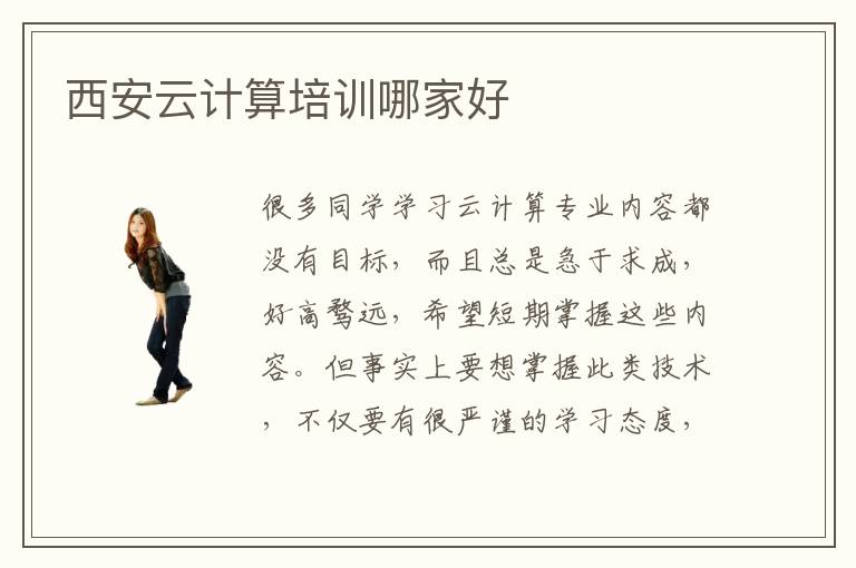 很多同學學習云計算專業(yè)內容都沒有目標,而且總是急于求成,好高騖遠,希望短期掌握這些內容。但事實上要想掌握此類技術,不僅要有很嚴謹的學習態(tài)度,而且要認真積累經驗,一步步達到目標,爭取更大的進步。西安云計算培訓云計算培訓哪家好,其實要看課程內容,教學體系,培訓項目等等,不能一概而論。云計算技術培訓班1對1輔導有很多作用,首先同學們在學習時,可能會發(fā)現學習效率不高,重點不夠明確,學習質量很低等等問題。而選擇輔導班的一對一課程后,學生就能找到自己的問題,然后獲得個性化的輔導,彌補自身的不足,讓知識儲備更豐富。云計算工程師要做什么,云計算工程師可以從事的工作非常多,包括云計算開發(fā),云計算架構,云計算服務,云計算軟件設計與應用。