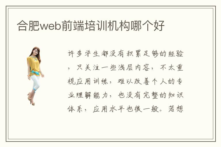 許多學生都沒有積累足夠的經(jīng)驗,只關(guān)注一些淺層內(nèi)容,不太重視應(yīng)用訓練,難以改善個人的專業(yè)理解能力,也沒有完整的知識體系,應(yīng)用水平也很一般。若想獲得進步,要總結(jié)經(jīng)驗,了解自己的學習方法。或者是提前關(guān)注合肥web前端培訓機構(gòu)哪個好,找到靠譜的培訓課程。web前端訓練班零基礎(chǔ)教學確實有很多的幫助,老師可根據(jù)大家的需要,分析培訓的難度和培訓的時間,調(diào)整培訓的節(jié)奏。只要同學有一些不懂的問題,都可以及時請教一下老師,然后把問題找到,一步步解答專業(yè)難題。web前端有什么用,主要的應(yīng)用就是網(wǎng)頁的前端設(shè)計,網(wǎng)絡(luò)功能設(shè)計,網(wǎng)頁開發(fā)等等,因為有些應(yīng)用涉及很多項目,如果同學沒有認真積累,找不到學習途徑和方法,可能就很難獲得提升。