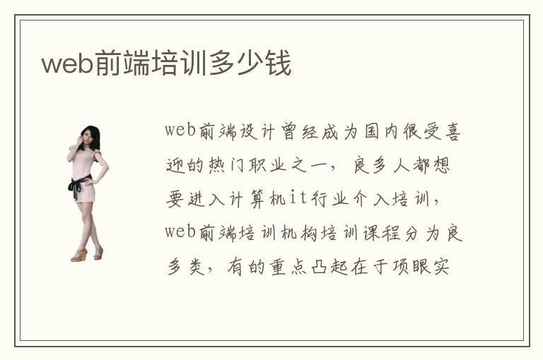 web前端設(shè)計(jì)曾經(jīng)成為國內(nèi)很受喜迎的熱門職業(yè)之一,良多人都想要進(jìn)入計(jì)算機(jī)it行業(yè)介入培訓(xùn),web前端培訓(xùn)機(jī)構(gòu)培訓(xùn)課程分為良多類,有的重點(diǎn)凸起在于項(xiàng)眼實(shí)踐拓展的培訓(xùn)研討,有的重點(diǎn)凸起在于web前端專業(yè)常識的妙技水平。web前端培訓(xùn)培訓(xùn)費(fèi)用多少錢web前端學(xué)習(xí)費(fèi)用是多少web前端設(shè)計(jì)培訓(xùn)學(xué)費(fèi)是多少web培訓(xùn)機(jī)構(gòu)培訓(xùn)價(jià)格價(jià)眼表。web前端培訓(xùn)多少錢推薦電腦學(xué)校