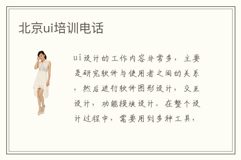 ui設(shè)計(jì)的工作內(nèi)容非常多,主要是研究軟件與使用者之間的關(guān)系,然后進(jìn)行軟件圖形設(shè)計(jì),交互設(shè)計(jì),功能模塊設(shè)計(jì)。在整個(gè)設(shè)計(jì)過(guò)程中,需要用到多種工具,也要進(jìn)行多層檢測(cè),確保設(shè)計(jì)的合理性、美觀性、可用性。北京ui培訓(xùn)電話(huà),有的技術(shù)員能力有限,不太懂軟件界面設(shè)計(jì),缺乏美感,或者沒(méi)有獨(dú)特的構(gòu)思,可以找到ui設(shè)計(jì)輔導(dǎo)班,強(qiáng)化個(gè)人專(zhuān)業(yè)實(shí)力。ui培訓(xùn)優(yōu)勢(shì)體現(xiàn)在注重學(xué)員們的基礎(chǔ)和應(yīng)用,收集工作當(dāng)中的案例,為學(xué)生一一講解。老師和同學(xué)交流更多,把同學(xué)現(xiàn)有問(wèn)題解決,使得知識(shí)結(jié)構(gòu)更為完善,工作能力更強(qiáng)。ui工程師的年薪大概在8萬(wàn)到30萬(wàn)之間,但其實(shí)這些只是估算,影響因素是公司的福利待遇以及學(xué)生自己的專(zhuān)業(yè)實(shí)力。假如剛剛起步,就不要只關(guān)注薪資,應(yīng)當(dāng)多提升工作能力。