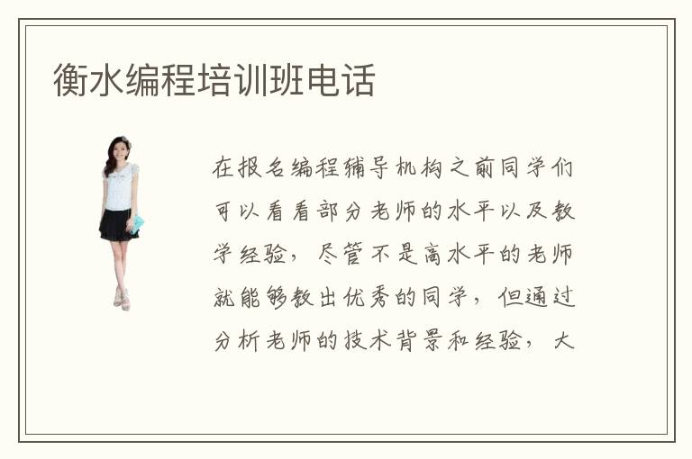 在報名編程輔導(dǎo)機(jī)構(gòu)之前同學(xué)們可以看看部分老師的水平以及教學(xué)經(jīng)驗,盡管不是高水平的老師就能夠教出優(yōu)秀的同學(xué),但通過分析老師的技術(shù)背景和經(jīng)驗,大家有對將來的老師有大概的了解,也能避開許多雷區(qū)。因為現(xiàn)在很多機(jī)構(gòu)會推出線上試聽課程,所以大家可以提前聯(lián)系衡水編程培訓(xùn)班電話,嘗試聽一聽這些課程,評估一下教學(xué)的質(zhì)量。編程教學(xué)機(jī)構(gòu)環(huán)境怎么樣,很多培訓(xùn)機(jī)構(gòu)為了讓同學(xué)有更好的學(xué)習(xí)環(huán)境,會購買大量的設(shè)備,優(yōu)化院校內(nèi)的氛圍,學(xué)員們可沉浸在其中。其實現(xiàn)在市面上的機(jī)構(gòu)都會開展各種類型的課程,包括就業(yè)課程,興趣引導(dǎo)課程,理論分析課,案例課程等,通過多種方式呈現(xiàn)。同學(xué)不妨確定好自己的學(xué)習(xí)需求,然后再適當(dāng)報名,更快達(dá)到編程零基礎(chǔ)入門的狀態(tài)。