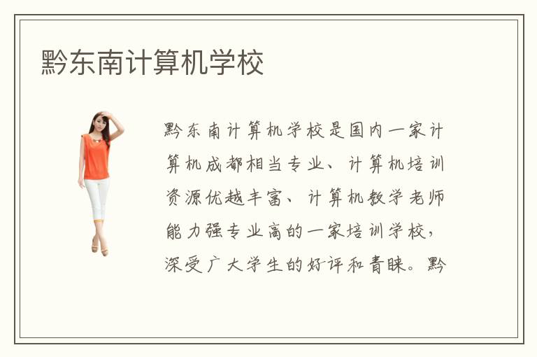 黔東南計(jì)算機(jī)學(xué)校是國(guó)內(nèi)一家計(jì)算機(jī)成都相當(dāng)專(zhuān)業(yè)、計(jì)算機(jī)培訓(xùn)資源優(yōu)越豐富、計(jì)算機(jī)教學(xué)老師能力強(qiáng)專(zhuān)業(yè)高的一家培訓(xùn)學(xué)校,深受廣大學(xué)生的好評(píng)和青睞。黔東南計(jì)算機(jī)學(xué)校位置是哪里呢?黔東南計(jì)算機(jī)學(xué)校地理位置條件優(yōu)越,能夠提供便捷的交通,方便學(xué)生來(lái)回溝通交流。黔東南計(jì)算機(jī)學(xué)校如何?黔東南計(jì)算機(jī)學(xué)校好不好?在哪里可以找到黔東南計(jì)算機(jī)學(xué)校?