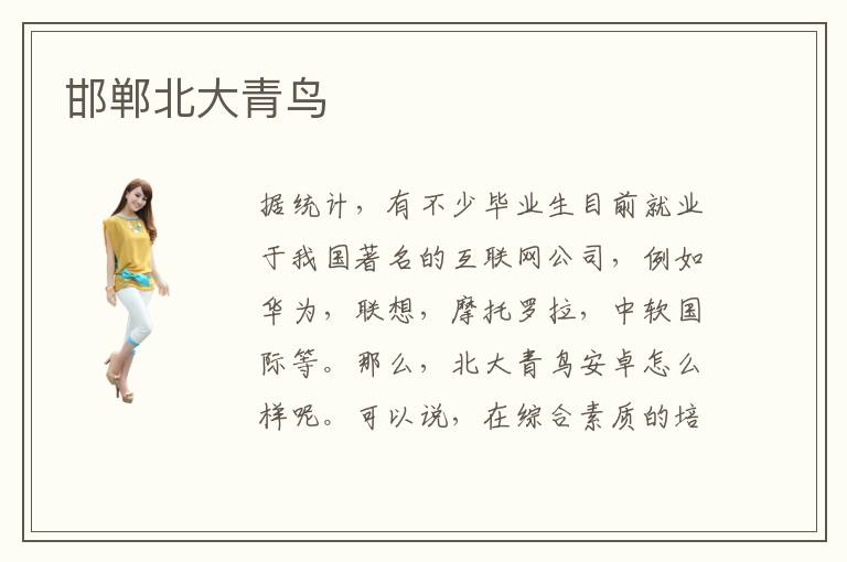 據(jù)統(tǒng)計,有不少畢業(yè)生目前就業(yè)于我國著名的互聯(lián)網(wǎng)公司,例如華為,聯(lián)想,摩托羅拉,中軟國際等。那么,北大青鳥安卓怎么樣呢。可以說,在綜合素質(zhì)的培養(yǎng)上,邯鄲北大青鳥是和一般本科類高校看齊邯鄲北大青鳥在哪的。確實,邯鄲北大青鳥培訓(xùn)水平是國內(nèi)數(shù)一數(shù)二的,所以邯鄲北大青鳥學(xué)校也是特別不錯的。所以邯鄲北大青鳥學(xué)校深受學(xué)生們的喜歡。青鳥培訓(xùn)班嚴(yán)格不,北大青鳥培訓(xùn)班很嚴(yán)格,北大青島培訓(xùn)機構(gòu)確實相當(dāng)嚴(yán)格,有多種角度的培訓(xùn)方案,培養(yǎng)學(xué)生的興趣愛好。各個事物都有好壞,但評論其好壞應(yīng)當(dāng)是相同事物間的比較,這樣比較出的結(jié)果才算是公平的。這是許多學(xué)員和家長都非常關(guān)心的問題。邯鄲北大青鳥怎么樣就是如此的優(yōu)秀的一所專業(yè)學(xué)校。青鳥培訓(xùn)班的老師有很好的教學(xué)能力,為學(xué)生的就業(yè)過程指明方向,學(xué)習(xí)完這些課程后,可以找到適合自己的崗位,迅速找到理想工作。