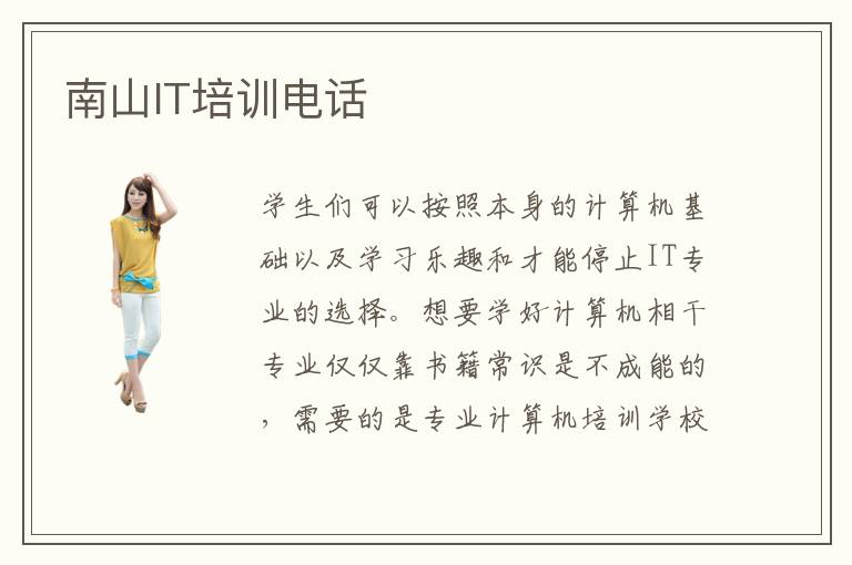 學(xué)生們可以按照本身的計算機(jī)基礎(chǔ)以及學(xué)習(xí)樂趣和才能停止IT專業(yè)的選擇。想要學(xué)好計算機(jī)相干專業(yè)僅僅靠書籍常識是不成能的,需要的是專業(yè)計算機(jī)培訓(xùn)學(xué)校的專業(yè)課程培訓(xùn),外加上計算機(jī)相干專業(yè)的學(xué)習(xí)在短期內(nèi)是看不出結(jié)果的,是以良多人會在學(xué)習(xí)計算機(jī)專業(yè)的半途選擇拋卻,也就更需要專業(yè)計算機(jī)培訓(xùn)學(xué)校的講授團(tuán)隊停止培訓(xùn)。南山IT專業(yè)練習(xí)班不但重視實(shí)際常識的講授和教授,同時,對一些實(shí)踐機(jī)遇也緊緊掌控住,爭奪讓學(xué)生可以在真實(shí)項眼里尋覓到學(xué)習(xí)的樂趣。南山是個經(jīng)濟(jì)開發(fā)的都會,是南山省的省地級市,是國內(nèi)的經(jīng)濟(jì)開發(fā)特區(qū)。此外,老師可以跟隨同學(xué)的學(xué)習(xí)進(jìn)度,調(diào)整學(xué)習(xí)的速度,還會適當(dāng)引導(dǎo)學(xué)生,讓大家有更多探索問題和思考問題的時間。要什么時候才跟你相關(guān)專業(yè)。