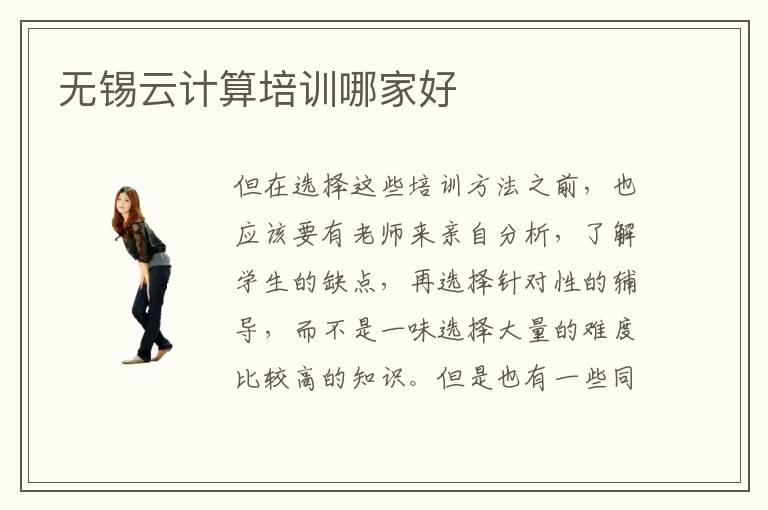 但在選擇這些培訓(xùn)方法之前,也應(yīng)該要有老師來(lái)親自分析,了解學(xué)生的缺點(diǎn),再選擇針對(duì)性的輔導(dǎo),而不是一味選擇大量的難度比較高的知識(shí)。但是也有一些同學(xué)選擇許多高階課程,涉及更多應(yīng)用,學(xué)習(xí)時(shí)間延長(zhǎng),收費(fèi)也會(huì)提高。云計(jì)算輔導(dǎo)班費(fèi)用高嗎,培訓(xùn)班的收費(fèi)一般都屬于比較適中的水平,比如有些同學(xué)對(duì)自己的要求不是很高,想要學(xué)習(xí)一些基礎(chǔ)課程,這些課程的難度較低,培訓(xùn)周期短,所以收費(fèi)比較便宜。無(wú)錫云計(jì)算電腦培訓(xùn)機(jī)構(gòu)是廣大青年學(xué)生選擇學(xué)習(xí)的地方。計(jì)算機(jī)相干專業(yè)的學(xué)習(xí)曾經(jīng)成了當(dāng)下的一種潮水,為了能夠在此后的就業(yè)進(jìn)程中加倍順?biāo)?,學(xué)好計(jì)算機(jī)相干專業(yè)便是很有必要的了。無(wú)錫云計(jì)算培訓(xùn)需要多少錢(qián)呢。云計(jì)算技術(shù)是目前最受歡迎的技術(shù),很多人都在學(xué)習(xí)云計(jì)算技術(shù)。