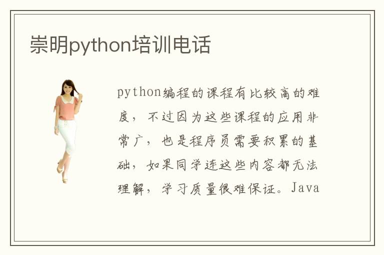 python編程的課程有比較高的難度,不過因為這些課程的應用非常廣,也是程序員需要積累的基礎,如果同學連這些內容都無法理解,學習質量很難保證。Java和Python等等專業(yè)的領域發(fā)展速度實在是比較快,很多學生都發(fā)現(xiàn)自己跟不上這些專業(yè)的變化,那么可以報名優(yōu)質輔導班,找到崇明Python培訓機構排行榜比較優(yōu)越的類型。python工程師需要學哪些課程,課程有數(shù)據(jù)挖掘,自動化信息作為網(wǎng)頁開發(fā),自動化測試網(wǎng)頁,后端程序開發(fā)等,對技術員來說有重要價值。python網(wǎng)上培訓有重要價值,因為特別多同學都沒有業(yè)余的時間去輔導班上課,而選擇網(wǎng)上教學方式,大家就可以在晚上通過互聯(lián)網(wǎng)的方法上課,學習的質量非常顯著,而且學習python課程的速度也很快。