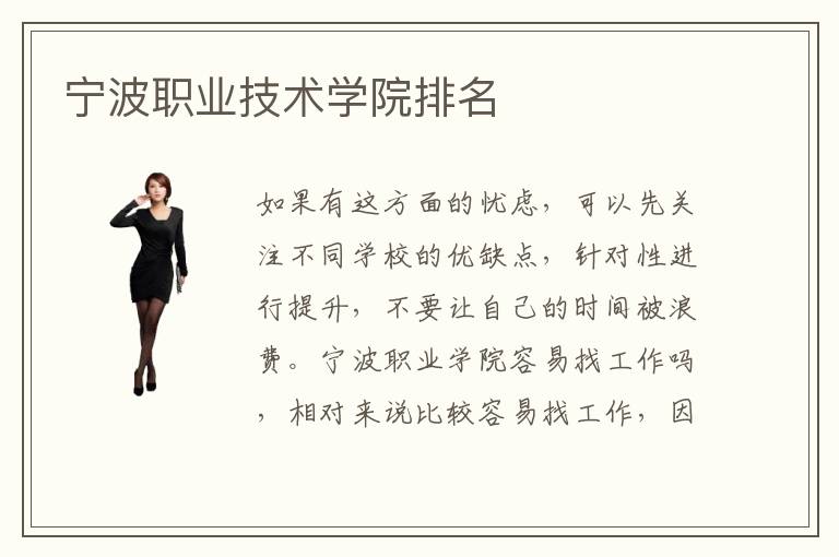 如果有這方面的憂(yōu)慮,可以先關(guān)注不同學(xué)校的優(yōu)缺點(diǎn),針對(duì)性進(jìn)行提升,不要讓自己的時(shí)間被浪費(fèi)。寧波職業(yè)學(xué)院容易找工作嗎,相對(duì)來(lái)說(shuō)比較容易找工作,因?yàn)楹芏鄬W(xué)校都會(huì)開(kāi)設(shè)一些比較熱門(mén)的專(zhuān)業(yè),而且老師也會(huì)針對(duì)不同的學(xué)生適當(dāng)培養(yǎng),從而提升就業(yè)的機(jī)會(huì)。有些學(xué)生發(fā)現(xiàn)自己的中考或者是高考的學(xué)習(xí)成績(jī)非常一般,因此不打算進(jìn)一步深入學(xué)習(xí),想要到職業(yè)學(xué)院進(jìn)修,掌握自己的專(zhuān)業(yè)技能,在未來(lái)的發(fā)展道路上可以找到更好的工作。好比寧波職業(yè)學(xué)校,那末,寧波職業(yè)學(xué)校的學(xué)習(xí)空氣怎么樣呢。寧波職業(yè)學(xué)院有排名嗎,大多數(shù)職業(yè)學(xué)院并沒(méi)有排名,如果要找好的學(xué)校,還是要多關(guān)注學(xué)生的口碑情況,有條件的情況下可到實(shí)地考察一下,了解專(zhuān)業(yè)的情況以及學(xué)生的評(píng)價(jià),相信會(huì)有非常不錯(cuò)的收獲。