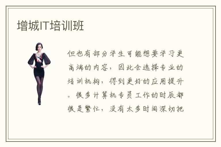 但也有部分學(xué)生可能想要學(xué)習(xí)更高端的內(nèi)容,因此會(huì)選擇專業(yè)的培訓(xùn)機(jī)構(gòu),得到更好的應(yīng)用提升。很多計(jì)算機(jī)專員工作的時(shí)辰都很是繁忙,沒(méi)有太多時(shí)間深切把握專業(yè)的妙技,但若是個(gè)體的學(xué)習(xí)水平很無(wú)限,一向處于原地,很難在工作上有上風(fēng)。增城IT培訓(xùn)品牌有哪些,其實(shí)很多IT培訓(xùn)課程的內(nèi)容都是很先進(jìn),凸顯出專業(yè)應(yīng)用的實(shí)力。it培訓(xùn)班環(huán)境如何,計(jì)算機(jī)輔導(dǎo)班的教學(xué)環(huán)境很優(yōu)越,首先配套設(shè)施很完善,大家可以利用好專項(xiàng)資源以及應(yīng)用設(shè)備,提高動(dòng)手和操作的能力,從而使各種計(jì)算機(jī)理論知識(shí)更加具象化。想要快速的,掌握這門技術(shù),就得到增城it培訓(xùn)學(xué)習(xí)電腦技術(shù)。有些同學(xué)花了好幾年的時(shí)間,但始終只是掌握一點(diǎn)點(diǎn)皮毛,沒(méi)有應(yīng)用到工作上,很難體現(xiàn)學(xué)習(xí)價(jià)值。