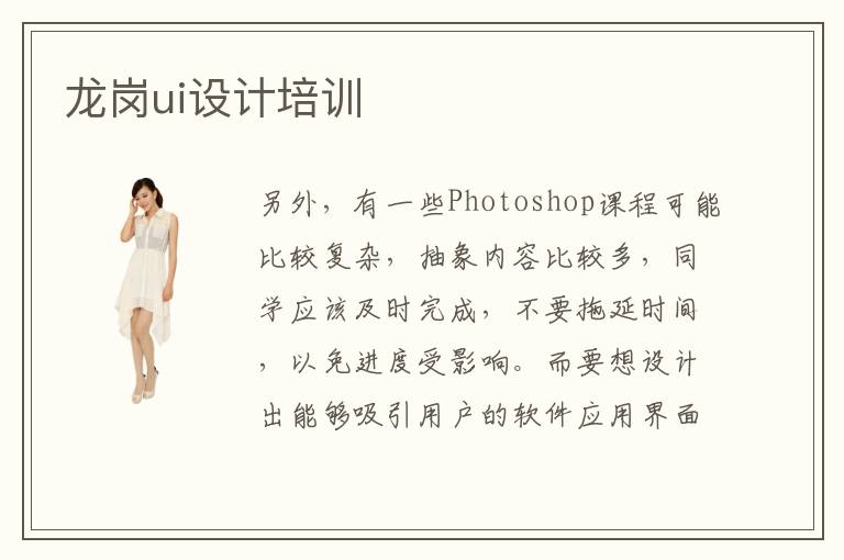 另外,有一些Photoshop課程可能比較復(fù)雜,抽象內(nèi)容比較多,同學應(yīng)該及時完成,不要拖延時間,以免進度受影響。而要想設(shè)計出能夠吸引用戶的軟件應(yīng)用界面,就需要優(yōu)秀的UI設(shè)計師來完成。所以,ui是我們這個時代比較熱門的行業(yè)之一。一位優(yōu)異的UI設(shè)計師不但需要把握必然的設(shè)計才能、審美才能,還需要把握發(fā)明糊口中美感的才能,這首要是針對UI軟件界面設(shè)計師的請求。假如同學的理論不夠扎實,或者應(yīng)用能力不強,思維不夠活躍,老師可幫助學生一一化解。ui輔導(dǎo)班老師厲害嗎,許多老師都比較厲害,有很嚴格的教學標準,同學在老師的指導(dǎo)后,往往有更高的要求,也有更好的學習效果。越來越多的想要提升自己的人,都選擇到龍崗UI培訓(xùn)技術(shù)。