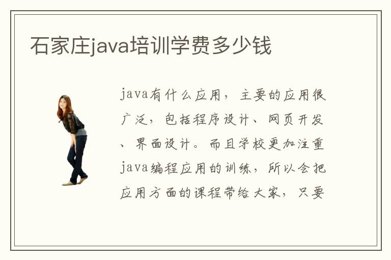 java有什么應(yīng)用,主要的應(yīng)用很廣泛,包括程序設(shè)計、網(wǎng)頁開發(fā)、界面設(shè)計。而且學(xué)校更加注重java編程應(yīng)用的訓(xùn)練,所以會把應(yīng)用方面的課程帶給大家,只要同學(xué)想要提高操作的能力,熟練掌握每一個編程的應(yīng)用項目,都可以多多咨詢輔導(dǎo)班的老師。java輔導(dǎo)學(xué)校指導(dǎo)課程有非常多,而且一直以來都會從同學(xué)的角度出發(fā),深入了解同學(xué)的不足,一步一步挖掘同學(xué)的弱項,這樣同學(xué)就會有更加充足的信心,對將來的學(xué)習(xí)也有更濃厚的興趣。中軟java開發(fā)培訓(xùn)java開發(fā)培訓(xùn)機構(gòu)的講授才能練習(xí)結(jié)果怎么樣。因此在選擇時要綜合權(quán)衡,做出自己的判斷。石家莊Java培訓(xùn)機構(gòu)在哪里。這個問題的應(yīng)案還是需要列位學(xué)生本身去尋覓,最主要一點是要注重培訓(xùn)機構(gòu)能否有學(xué)生的就業(yè)保證協(xié)議。