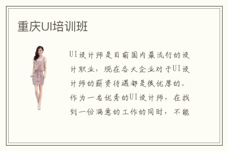 UI設(shè)計(jì)師是目前國(guó)內(nèi)最流行的設(shè)計(jì)職業(yè),現(xiàn)在各大企業(yè)對(duì)于UI設(shè)計(jì)師的薪資待遇都是很優(yōu)厚的。作為一名優(yōu)秀的UI設(shè)計(jì)師,在找到一份滿意的工作的同時(shí),不能只停留于此,不斷提升UI設(shè)計(jì)相關(guān)技術(shù),不斷提升審美、尋找靈感,才是作為一名優(yōu)秀的UI設(shè)計(jì)師應(yīng)該做的事情。重慶UI培訓(xùn)班會(huì)根據(jù)各大企業(yè)對(duì)于UI技術(shù)人員的招聘需求,不斷更新改進(jìn)課程,對(duì)學(xué)員的就業(yè)做好了充分保障。