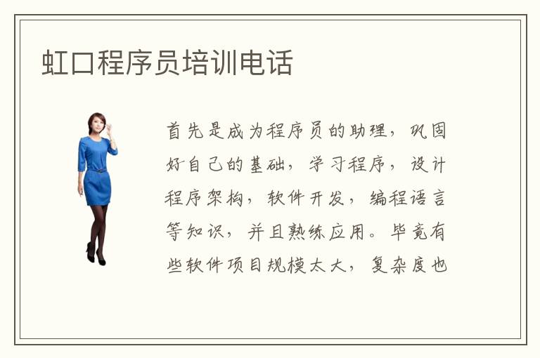 首先是成為程序員的助理,鞏固好自己的基礎,學習程序,設計程序架構,軟件開發(fā),編程語言等知識,并且熟練應用。畢竟有些軟件項目規(guī)模太大,復雜度也非常高,如果只是初級或者是中級的程序員,很難理解這些知識,也無法進一步掌握。為了改善程序員專業(yè)的實力,學生要多分析應用能力的知識,根據(jù)個人的學習狀態(tài),挑選合適的實踐任務,提高學習的成績。為了快速看到自己的進步,學員可以報名虹口程序員培訓機構,由老師安排清晰的指導課程和復習清單,制定嚴謹?shù)呐嘤柲繕?,學生收獲會明顯大很多。程序員的學歷要求和技能要求越來越高,如果同學從零基礎開始學習,往往要花很多時間。虹口程序員培訓機構的培訓方案很豐富,往往會根據(jù)不同的學員,安排不一樣的技術課程。