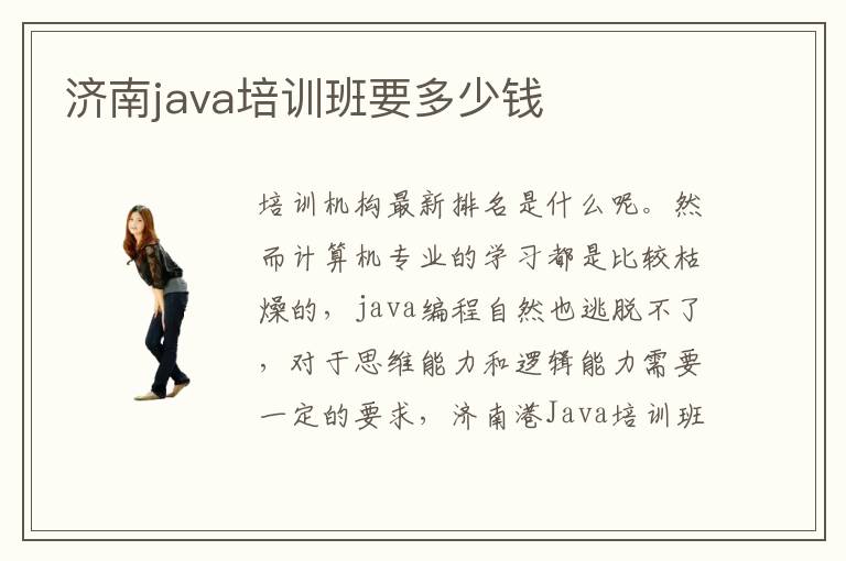 培訓機構(gòu)最新排名是什么呢。然而計算機專業(yè)的學習都是比較枯燥的,java編程自然也逃脫不了,對于思維能力和邏輯能力需要一定的要求,濟南港Java培訓班是各位學員學習java編程的首選平臺。所以計算機專業(yè)同學要深入了解,關(guān)注不同語言的作用和應用領(lǐng)域,不要盲目選擇。那么,你知道濟南java培訓機構(gòu)哪家好呢。要想學好計算機編程這一專業(yè),就必需要把握必然的Java語言編程設計技術(shù),那末你曉得濟南Java培訓班的學習空氣怎么樣呢。許多人剛開始學習java特別積極,一段時間后就再難堅持,所以,我們一定得堅持學習下去,最終才可以掌握java技術(shù)。編程最方便的語言就是java了,然而java的學習需要掌握一定的計算機基礎知識,因此接受專業(yè)java培訓班的教學是最有效的方式。