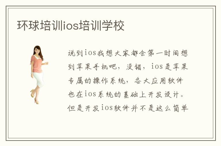 說到ios我想大家都會第一時間想到蘋果手機吧,沒錯,ios是蘋果專屬的操作系統(tǒng),各大應用軟件也在ios系統(tǒng)的基礎上開發(fā)設計。但是開發(fā)ios軟件并不是這么簡單的,需要很強的ios專業(yè)技術。那么,ios培訓機構哪家好呢?當然是環(huán)球培訓ios培訓學校啦。環(huán)球培訓ios培訓學校作為官方的蘋果授權培訓機構,為學員提供最專業(yè)的ios技術培訓課程,讓學員了解ios,精通ios。
