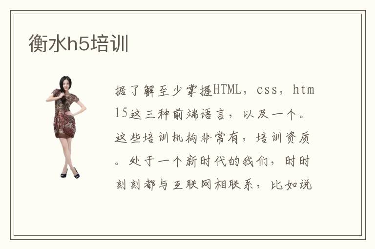 據(jù)了解至少掌握HTML,css,html5這三種前端語言,以及一個(gè)。這些培訓(xùn)機(jī)構(gòu)非常有,培訓(xùn)資質(zhì)。處于一個(gè)新時(shí)代的我們,時(shí)時(shí)刻刻都與互聯(lián)網(wǎng)相聯(lián)系,比如說我們工作,學(xué)習(xí)和生活都離不開電腦,而我們?cè)谑褂秒娔X的同時(shí),同樣離不開網(wǎng)頁。同時(shí),網(wǎng)頁也是構(gòu)建網(wǎng)站的基本元素,充斥著我們?nèi)粘I钪械狞c(diǎn)點(diǎn)滴滴。衡水html5培訓(xùn)機(jī)構(gòu)還是有的而且不少,在衡水html5培訓(xùn)就是一個(gè)很好的選擇。衡水h5培訓(xùn)培訓(xùn)班,培訓(xùn)水平非常的高。而且這里面的,教師也都是非常有責(zé)任心的。我們一一來說:首先衡水html5培訓(xùn)還是一個(gè)非常不錯(cuò)的選擇,由于衡水市是貴州省比較發(fā)達(dá)的城市,政府和國(guó)家為了城市更好的發(fā)展,大力加強(qiáng)各領(lǐng)域的建設(shè),html5行業(yè)也被寄予了很大的期待值。