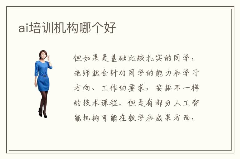 但如果是基礎比較扎實的同學,老師就會針對同學的能力和學習方向、工作的要求,安排不一樣的技術課程。但是有部分人工智能機構(gòu)可能在教學和成果方面,沒有太多明顯優(yōu)勢,而且只有兩三年的教學經(jīng)驗,確實是不太利于學生的學習,因此不要作為優(yōu)質(zhì)的選擇。人工智能培訓有哪些用處,培訓機構(gòu)的作用是分析就業(yè)趨勢,結(jié)合工作應用要求,帶來嚴謹?shù)恼n程,讓同學掌握更多技能。人工智能培訓機構(gòu)效率怎樣,其實也有很多課程的效率都比較高,可以為學生帶來很多豐富的課程積累。人工智能專業(yè)的知識非常新穎,許多學生學習過程都比較吃力,原因就是不知道怎么樣應用,也沒有實踐的案例,長時間如此,很容易讓人灰心。人工智能有什么課程,人工智能課程有計算機算法以及深度學習。