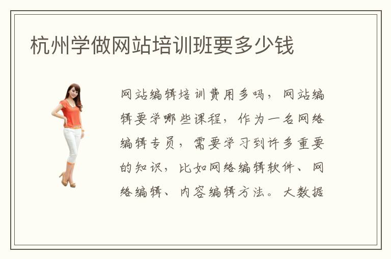 網(wǎng)站編輯培訓(xùn)費用多嗎,網(wǎng)站編輯要學(xué)哪些課程,作為一名網(wǎng)絡(luò)編輯專員,需要學(xué)習(xí)到許多重要的知識,比如網(wǎng)絡(luò)編輯軟件、網(wǎng)絡(luò)編輯、內(nèi)容編輯方法。大數(shù)據(jù)學(xué)習(xí)網(wǎng)站還是挺多的。網(wǎng)站推廣培訓(xùn)要多久,可能培訓(xùn)兩個月到三個月即可,其實主要的作用在于幫助學(xué)生調(diào)整課程的進度,進行綜合的整理和歸納,讓大家的學(xué)習(xí)節(jié)奏得到快速上升,效率大大提升。那數(shù)據(jù)分析學(xué)習(xí)網(wǎng)站,綜合很多的,關(guān)于大數(shù)據(jù)分析方面的,知識內(nèi)容。杭州學(xué)做網(wǎng)站培訓(xùn)機構(gòu),有著非常多的,專業(yè)性的教師,所以學(xué)員在這里學(xué)到的知識也都是專業(yè)的知識。它的存在意義就是為了幫助更多的人先了解大數(shù)據(jù)開發(fā)技術(shù)。網(wǎng)站工程師有什么課程,網(wǎng)絡(luò)工程師的課程比較多,比如網(wǎng)絡(luò)開發(fā)與設(shè)計、網(wǎng)絡(luò)制作、網(wǎng)絡(luò)功能培訓(xùn),大家要結(jié)合自己的實踐應(yīng)用能力來進行訓(xùn)練。