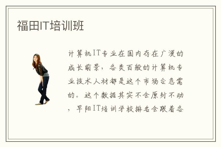 計算機IT專業(yè)在國內(nèi)存在廣漠的成長前景,各類百般的計算機專業(yè)技術(shù)人材都是這個市場合急需的。這個數(shù)據(jù)其實不會原封不動,早陽IT培訓(xùn)學(xué)校排名會跟著各大計算機培訓(xùn)學(xué)校的不竭成長做出響應(yīng)的調(diào)劑,我們還是先來領(lǐng)會一下早陽IT培訓(xùn)學(xué)校的最新排名挨次吧。這些專業(yè)的福田it培訓(xùn)機構(gòu)有哪些教學(xué)特點呢。福田IT培訓(xùn)學(xué)校雖然擁有的知名度和學(xué)校的人氣并不是最高的,但是其培訓(xùn)過程中投入的時間和精力卻是有目共睹的,正是因為如此,福田IT培訓(xùn)中心的開辦獲得了無論是家長還是學(xué)生們的大力支持,福田IT培訓(xùn)機構(gòu)的發(fā)展前途一片光明。計算機相干專業(yè)的品種豐碩多樣,福田IT培訓(xùn)學(xué)校作為一所專業(yè)的計算機培訓(xùn)學(xué)校,天然也開設(shè)了多種多樣的計算機專業(yè)課程。