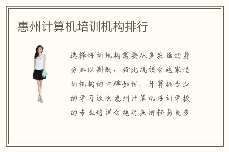 選擇培訓(xùn)機構(gòu)需要從多發(fā)面的身分加以斟酌,好比說領(lǐng)會這家培訓(xùn)機構(gòu)的口碑如何。計算機專業(yè)的學(xué)習(xí)議決惠州計算機培訓(xùn)學(xué)校的專業(yè)培訓(xùn)會絕對來講輕易良多,注重體例方式講授的同時也使得計算機專業(yè)的學(xué)習(xí)變得又去起來?;葜?a href="/it/detail4416.html">計算機培訓(xùn)學(xué)校怎么樣呢。惠州計算機學(xué)校有很多,想要學(xué)習(xí)計算機相關(guān)專業(yè)的同學(xué)在進行惠州計算機學(xué)校的選擇時,首先就需要進行這些培訓(xùn)機構(gòu)的了解,而探查這些惠州計算機學(xué)校的口碑是了解它的第一步。學(xué)電腦學(xué)什么好,電腦技術(shù)的專業(yè)類型特別多,比如電子信息,人工智能,軟件開發(fā),程序應(yīng)用,數(shù)據(jù)分析。所以學(xué)習(xí)計算機技術(shù)就到惠州計算機培訓(xùn)機構(gòu)學(xué)習(xí),這樣會更輕松就可以掌握TI專業(yè)知識。如何選理想專業(yè),首先要根據(jù)個人的學(xué)習(xí)情況以及擅長制作來挑選,部分同學(xué)對技術(shù)類的專業(yè)感興趣,可以找到計算機或者是軟件開發(fā),程序設(shè)計,大數(shù)據(jù)分析,人工智能等相關(guān)工作。