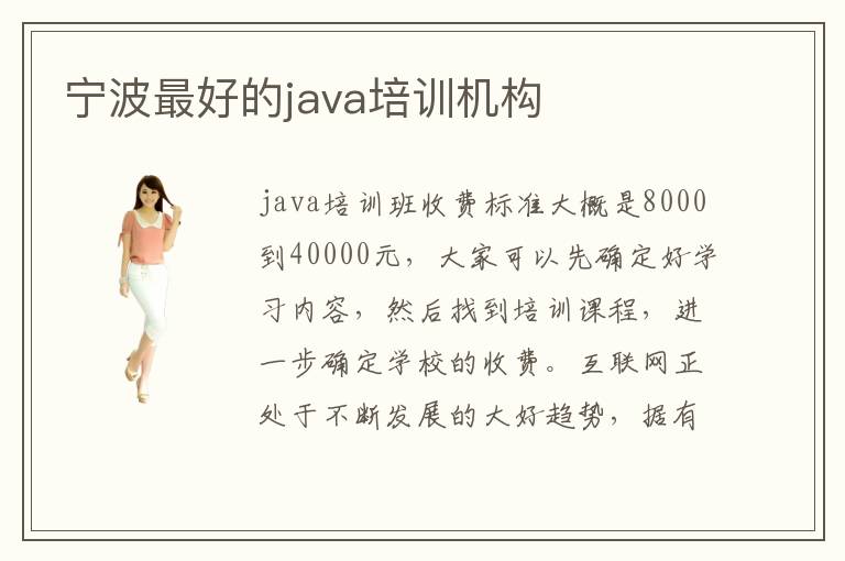 java培訓(xùn)班收費標(biāo)準大概是8000到40000元,大家可以先確定好學(xué)習(xí)內(nèi)容,然后找到培訓(xùn)課程,進一步確定學(xué)校的收費。互聯(lián)網(wǎng)正處于不斷發(fā)展的大好趨勢,據(jù)有關(guān)數(shù)據(jù)顯示,未來幾年國內(nèi)的移動互聯(lián)網(wǎng)行業(yè)更將步入一個新時代。大家都知道,學(xué)習(xí)一門技術(shù),尤其是互聯(lián)網(wǎng)行業(yè)的相關(guān)技術(shù),最快捷、最有效的途徑,就是進入專業(yè)的培訓(xùn)機構(gòu)進行學(xué)習(xí)。java編程眼前在編程設(shè)計這一方面利用最普遍的語言之一,java是一種面向?qū)ο蟮木幊陶Z言,它的功效壯大而且具有最簡潔的編程算法,可以說是此刻大大都編程技術(shù)職員所應(yīng)用的手段。寧波位于我國的寧波省,是個風(fēng)景怡人而又經(jīng)濟發(fā)達的城市,隨著移動互聯(lián)網(wǎng)的發(fā)展形勢大好,已經(jīng)成立了許多家大大小小的培訓(xùn)機構(gòu)。