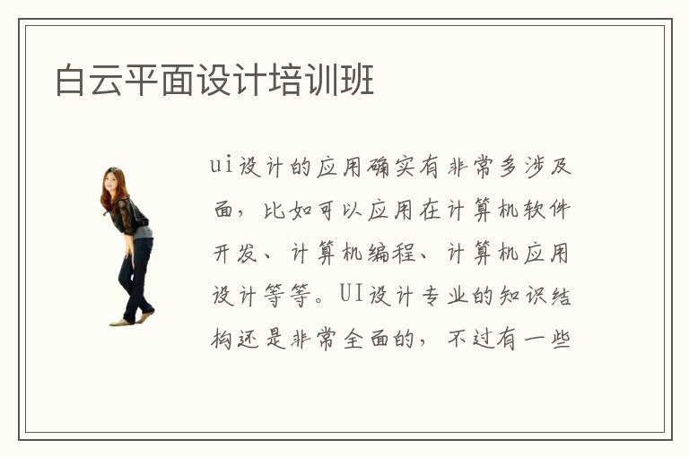 ui設(shè)計(jì)的應(yīng)用確實(shí)有非常多涉及面,比如可以應(yīng)用在計(jì)算機(jī)軟件開發(fā)、計(jì)算機(jī)編程、計(jì)算機(jī)應(yīng)用設(shè)計(jì)等等。UI設(shè)計(jì)專業(yè)的知識(shí)結(jié)構(gòu)還是非常全面的,不過有一些知識(shí)點(diǎn)確實(shí)比較困難,很多人在選擇這些技術(shù)方案時(shí),都沒有很好的了解,導(dǎo)致學(xué)習(xí)的效率大大下降。因此大家在軟件開發(fā)過程中,需要了解個(gè)人的技術(shù)漏洞,不斷地彌補(bǔ),得到更多改進(jìn)。對(duì)自己有幫助的一些培訓(xùn)機(jī)構(gòu)來進(jìn)行培訓(xùn)。若是報(bào)名輔導(dǎo)機(jī)構(gòu),即可以學(xué)習(xí)這些內(nèi)容,也能夠給本身更多信念。設(shè)計(jì)軟件有哪些首要課程,首要個(gè)體有軟件開發(fā)、設(shè)計(jì)軟件架構(gòu)、軟件功效闡發(fā)??梢哉f白云網(wǎng)頁(yè)設(shè)計(jì)培訓(xùn)的機(jī)構(gòu)獨(dú)占了地域優(yōu)勢(shì)和比較豐富的就業(yè)資訊,技術(shù)學(xué)成的學(xué)員能夠有比較多的機(jī)會(huì)找到工作。另外,同學(xué)之間在課堂上往往有非常主動(dòng)的學(xué)習(xí)態(tài)度,有問題可以馬上向老師發(fā)問,得到老師的精彩解答之后,學(xué)生收獲更加顯著,進(jìn)步更快,以后動(dòng)力更足,形成正面的循環(huán)。