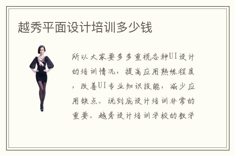 所以大家要多多重視各種UI設(shè)計(jì)的培訓(xùn)情況,提高應(yīng)用熟練程度,改善UI專業(yè)知識(shí)技能,減少應(yīng)用缺點(diǎn)。說(shuō)到底設(shè)計(jì)培訓(xùn)非常的重要。越秀設(shè)計(jì)培訓(xùn)學(xué)校的教學(xué)質(zhì)量很高,培訓(xùn)速度很快,培訓(xùn)的內(nèi)容全面,只要同學(xué)有任何疑問(wèn),可以多多請(qǐng)教老師,老師會(huì)快速進(jìn)行回答??墒怯行W(xué)生長(zhǎng)時(shí)間都不太重視應(yīng)用的水準(zhǔn),只是停留在理論階段學(xué)習(xí),積累很多理論知識(shí),也很難發(fā)揮出實(shí)踐的效果。然而學(xué)建網(wǎng)站技術(shù)并不是看看書(shū)那么簡(jiǎn)單就可以掌握的,當(dāng)然需要到專業(yè)的地方去學(xué)習(xí)建網(wǎng)站技術(shù)。平面廣告設(shè)計(jì)培訓(xùn)有必要嗎,平面廣告設(shè)計(jì)培訓(xùn)也有必要,尤其是許多學(xué)生習(xí)慣于理論的積累,忽略掉應(yīng)用的課程,很長(zhǎng)一段時(shí)間都沒(méi)有強(qiáng)大的設(shè)計(jì)能力,剛畢業(yè)可能就要面臨失業(yè)。他們都會(huì)傳授給學(xué)生專業(yè)知識(shí),這些教師也都有比較獨(dú)特的教學(xué)方法,讓學(xué)生們輕松的就能學(xué)到專業(yè)知識(shí)。