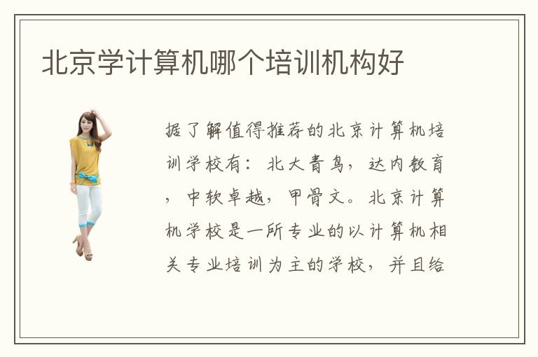 據(jù)了解值得推薦的北京計(jì)算機(jī)培訓(xùn)計(jì)算機(jī)培訓(xùn)學(xué)校有:北大青鳥(niǎo),達(dá)內(nèi)教育,中軟卓越,甲骨文。北京計(jì)算機(jī)學(xué)校是一所專(zhuān)業(yè)的以計(jì)算機(jī)相關(guān)專(zhuān)業(yè)培訓(xùn)為主的學(xué)校,并且給北京計(jì)算機(jī)學(xué)校的在校學(xué)生提供了很多不易的學(xué)習(xí)機(jī)會(huì),高效的進(jìn)行課程培訓(xùn)。其實(shí)很多計(jì)算機(jī)培訓(xùn)學(xué)校都是比較有針對(duì)性的,而且北京港計(jì)算機(jī)培訓(xùn)學(xué)校學(xué)風(fēng)優(yōu)良,可以讓學(xué)生在比較濃郁的學(xué)習(xí)氛圍中提升自己,也能找到志同道合的人才。北京計(jì)算機(jī)學(xué)校的專(zhuān)業(yè)程度無(wú)可置疑。另外培訓(xùn)學(xué)校的好壞往往有教學(xué)質(zhì)量,老師的水平,教學(xué)環(huán)境,設(shè)備等等來(lái)決定,所以在北京計(jì)算機(jī)培訓(xùn)學(xué)校挑選的時(shí)候一定要先關(guān)注這些方面的內(nèi)容,不要只考慮學(xué)費(fèi),還應(yīng)該要多了解學(xué)校的優(yōu)劣之處。學(xué)生們對(duì)它都有什么評(píng)估呢。另外不同的費(fèi)用存在很多不同點(diǎn),要權(quán)衡利弊。