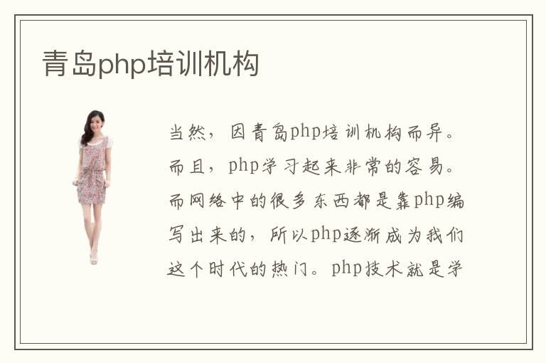 當(dāng)然,因青島php培訓(xùn)機(jī)構(gòu)而異。而且,php學(xué)習(xí)起來非常的容易。而網(wǎng)絡(luò)中的很多東西都是靠php編寫出來的,所以php逐漸成為我們這個時代的熱門。php技術(shù)就是學(xué)的人比較多的專業(yè)技術(shù)。php編程的內(nèi)容有點多,要求也比較高,可能很多同學(xué)理解不到位,導(dǎo)致應(yīng)用的時候會非常困惑,也達(dá)不到工作標(biāo)準(zhǔn)。那末,達(dá)內(nèi)教育php培訓(xùn)費(fèi)用是多少呢。php編程的應(yīng)用領(lǐng)域廣,不僅可以用于軟件應(yīng)用,而且可以用到編譯加密、優(yōu)化代碼、動態(tài)頁面設(shè)計等等方面。青島php培訓(xùn)機(jī)構(gòu)隨著php在php行業(yè)的廣泛應(yīng)用得到了快速的發(fā)展。php培訓(xùn)機(jī)構(gòu)水平怎么樣,php培訓(xùn)機(jī)構(gòu)的專業(yè)水平值得大家期待,主要是某些知名的補(bǔ)習(xí)班有成熟經(jīng)驗,擁有完善教學(xué)體系,將各種熱門的課程融合到課堂當(dāng)中,所以大家會有很好的學(xué)習(xí)體驗。