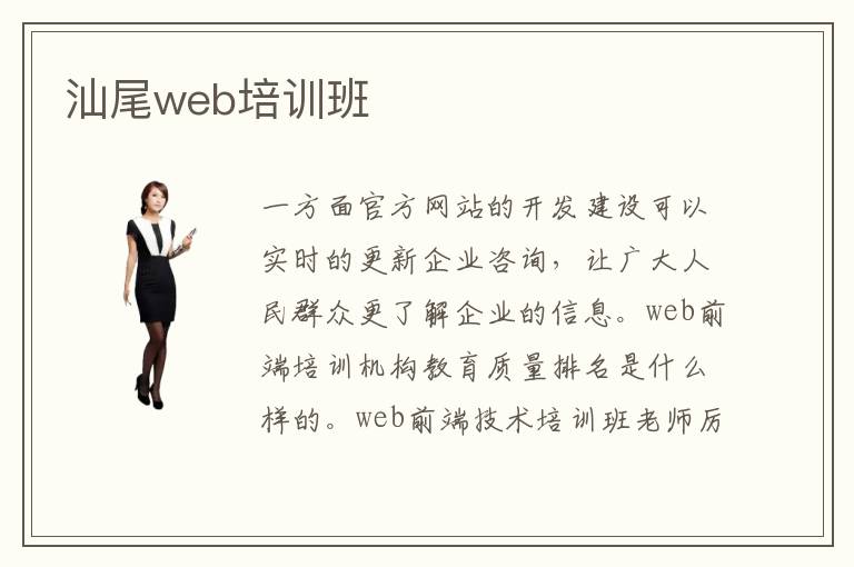 一方面官方網(wǎng)站的開(kāi)發(fā)建設(shè)可以實(shí)時(shí)的更新企業(yè)咨詢(xún),讓廣大人民群眾更了解企業(yè)的信息。web前端培訓(xùn)機(jī)構(gòu)教育質(zhì)量排名是什么樣的。web前端技術(shù)培訓(xùn)班老師厲不厲害,許多老師都有很強(qiáng)的專(zhuān)業(yè)水平,培訓(xùn)速度也比較快,內(nèi)容很清晰,同學(xué)也相當(dāng)滿(mǎn)意。如果缺乏規(guī)劃,遇到難題也沒(méi)有老師指點(diǎn),可能會(huì)遇到特別多的障礙。web前端專(zhuān)業(yè)知識(shí)涉及面很廣,有些知識(shí)可能要應(yīng)用到軟件開(kāi)發(fā)、軟件設(shè)計(jì)和頁(yè)面設(shè)計(jì)等等多個(gè)領(lǐng)域。而正因?yàn)樯俏?a href="/it/detail10594.html">web前端培訓(xùn)水平高,很多人選擇去汕尾培訓(xùn)的時(shí)候,經(jīng)??紤]一個(gè)問(wèn)題,那就是汕尾web前端培訓(xùn)費(fèi)用高不高。如果愿意報(bào)班,可以先看看汕尾web前端培訓(xùn)費(fèi)用,了解各種影響因素。畢竟每年有大多數(shù)的人都來(lái)汕尾web前端培訓(xùn)。