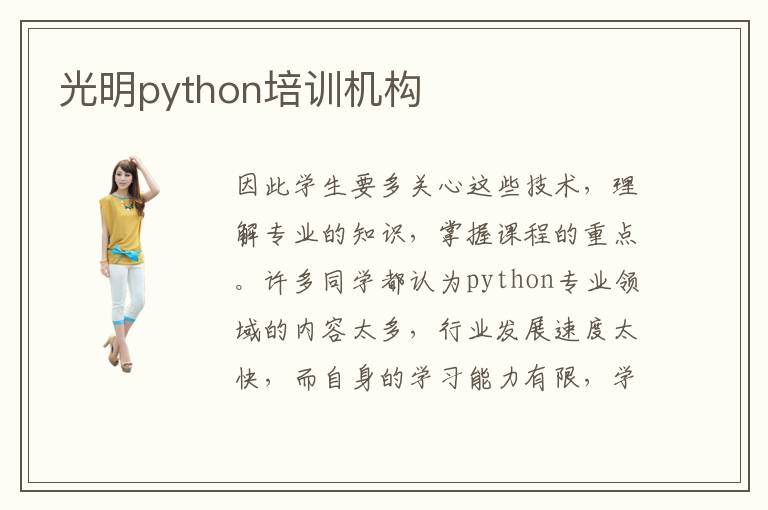 因此學(xué)生要多關(guān)心這些技術(shù),理解專業(yè)的知識(shí),掌握課程的重點(diǎn)。許多同學(xué)都認(rèn)為python專業(yè)領(lǐng)域的內(nèi)容太多,行業(yè)發(fā)展速度太快,而自身的學(xué)習(xí)能力有限,學(xué)習(xí)效率很低,無法跟上行業(yè)的步伐。python課程有一點(diǎn)點(diǎn)復(fù)雜,許多學(xué)生的理解能力不是很強(qiáng),學(xué)過之后馬上忘記,基本沒有好的成績(jī)。在學(xué)習(xí)計(jì)算機(jī)python編程的時(shí)候,同學(xué)要看清楚每一個(gè)應(yīng)用的領(lǐng)域和范圍,畢竟有些編程語言的適用范圍比較小,容易受到局限,可能很難實(shí)現(xiàn)大家的要求。python行業(yè)的前途怎么樣,行業(yè)發(fā)展前途很好,工資待遇不錯(cuò),而且就業(yè)機(jī)會(huì)也很多。但具體的情況因人而異,大家在挑選時(shí),不妨多多咨詢,了解每個(gè)學(xué)校的教學(xué)成果。python培訓(xùn)機(jī)構(gòu)作用非常重要,老師可以結(jié)合學(xué)生的接受能力以及學(xué)習(xí)的進(jìn)度,選擇合適的python課程,跟進(jìn)不同階段的學(xué)習(xí)狀況,幫助學(xué)生更快理解python專業(yè)的知識(shí)點(diǎn)。