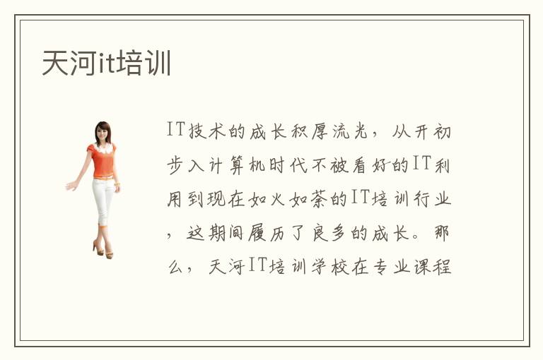 IT技術(shù)的成長積厚流光,從開初步入計(jì)算機(jī)時(shí)代不被看好的IT利用到現(xiàn)在如火如荼的IT培訓(xùn)行業(yè),這期間履歷了良多的成長。那么,天河IT培訓(xùn)學(xué)校在專業(yè)課程教學(xué)方面有什么特點(diǎn)呢。天河it培訓(xùn)班非常重視應(yīng)用課程,不僅僅會(huì)安排許多書本上面的課程,也會(huì)結(jié)合工作應(yīng)用的項(xiàng)目,詳細(xì)講解工作要求,這樣同學(xué)就可以得到很大的改進(jìn),工作能力更強(qiáng),也能獲得更高的薪資待遇。it培訓(xùn)人氣高不高,許多輔導(dǎo)機(jī)構(gòu)的教學(xué)效果特別明顯,同學(xué)們在幾個(gè)月內(nèi)可掌握一門技能,工作中有更突出的競爭力,因此機(jī)構(gòu)也備受歡迎。天河IT技術(shù)培訓(xùn)學(xué)校好不好。天河IT培訓(xùn)學(xué)校是一所以計(jì)算機(jī)相關(guān)專業(yè)課程教學(xué)為主的學(xué)校,為不同計(jì)算機(jī)相關(guān)專業(yè)的不同就業(yè)方向設(shè)定了不同的培訓(xùn)課程。
