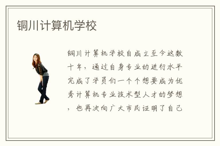 銅川計(jì)算機(jī)學(xué)校自成立至今這數(shù)十年,通過(guò)自身專(zhuān)業(yè)的進(jìn)行水平完成了學(xué)員們一個(gè)個(gè)想要成為優(yōu)秀計(jì)算機(jī)專(zhuān)業(yè)技術(shù)型人才的夢(mèng)想,也再次向廣大市民證明了自己的實(shí)力,為自己的培訓(xùn)機(jī)構(gòu)贏來(lái)榮譽(yù)。銅川計(jì)算機(jī)學(xué)校提倡“勞逸結(jié)合”的學(xué)習(xí)方式,課程安排更加人性化,在課余之際還會(huì)開(kāi)展豐富的校園文化活動(dòng)或者是企業(yè)小型實(shí)踐項(xiàng)目,積極鼓勵(lì)銅川計(jì)算機(jī)學(xué)校的在校學(xué)員們參加這些活動(dòng)。