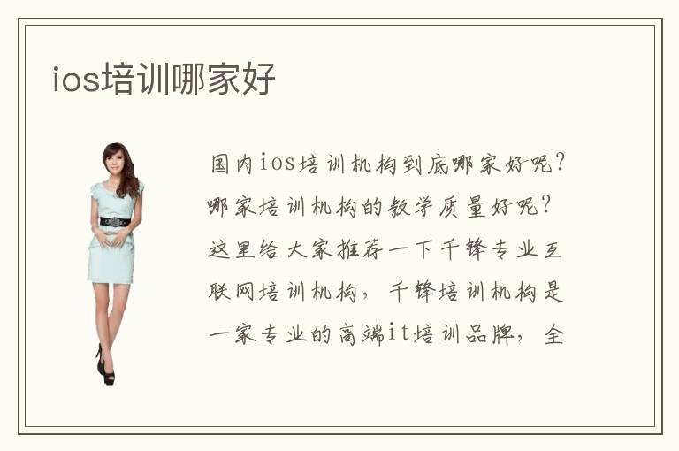 國內(nèi)ios培訓(xùn)機構(gòu)到底哪家好呢?哪家培訓(xùn)機構(gòu)的教學(xué)質(zhì)量好呢?這里給大家推薦一下千鋒專業(yè)互聯(lián)網(wǎng)培訓(xùn)機構(gòu),千鋒培訓(xùn)機構(gòu)是一家專業(yè)的高端it培訓(xùn)品牌,全國很多地方都已經(jīng)開設(shè)了授權(quán)分機構(gòu)。專業(yè)的高學(xué)歷教師團隊,并且老師在專業(yè)方面的經(jīng)驗都在兩年左右,做到“良心做教育”。從千鋒畢業(yè)出去的學(xué)員,都受到了各大企業(yè)的重視,企業(yè)管理人員都贊不絕口。ios培訓(xùn)哪家好?還是千鋒靠譜。