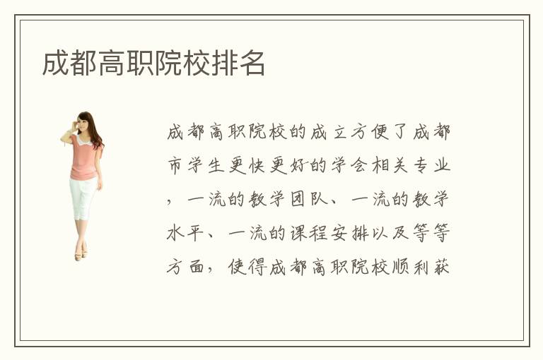 成都高職院校的成立方便了成都市學生更快更好的學會相關專業(yè),一流的教學團隊、一流的教學水平、一流的課程安排以及等等方面,使得成都高職院校順利獲得了良好的口碑,也取得了成都廣大市民的信任,成為了成都學生進行專業(yè)課程的首選學校。成都高職院校師資一般是非常好的,老師經(jīng)驗豐富,如果有條件的話,也可以到當?shù)氐膶W校進行考察一下,了解學生的講授方法,看看自己能不能夠適應,有些老師是學以致用,介紹一部分理論,其他部分由學生親自操作。其實現(xiàn)在很多學校都是能夠發(fā)揮良好優(yōu)勢,改善未來的就業(yè),對學生也有很好的幫助。成都高職院校排名如何雖然并不是特別靠前,但很多高職院校有個別專業(yè)都是比較靠前的,師資隊伍非常強硬,一直都保持高水平的狀態(tài)。